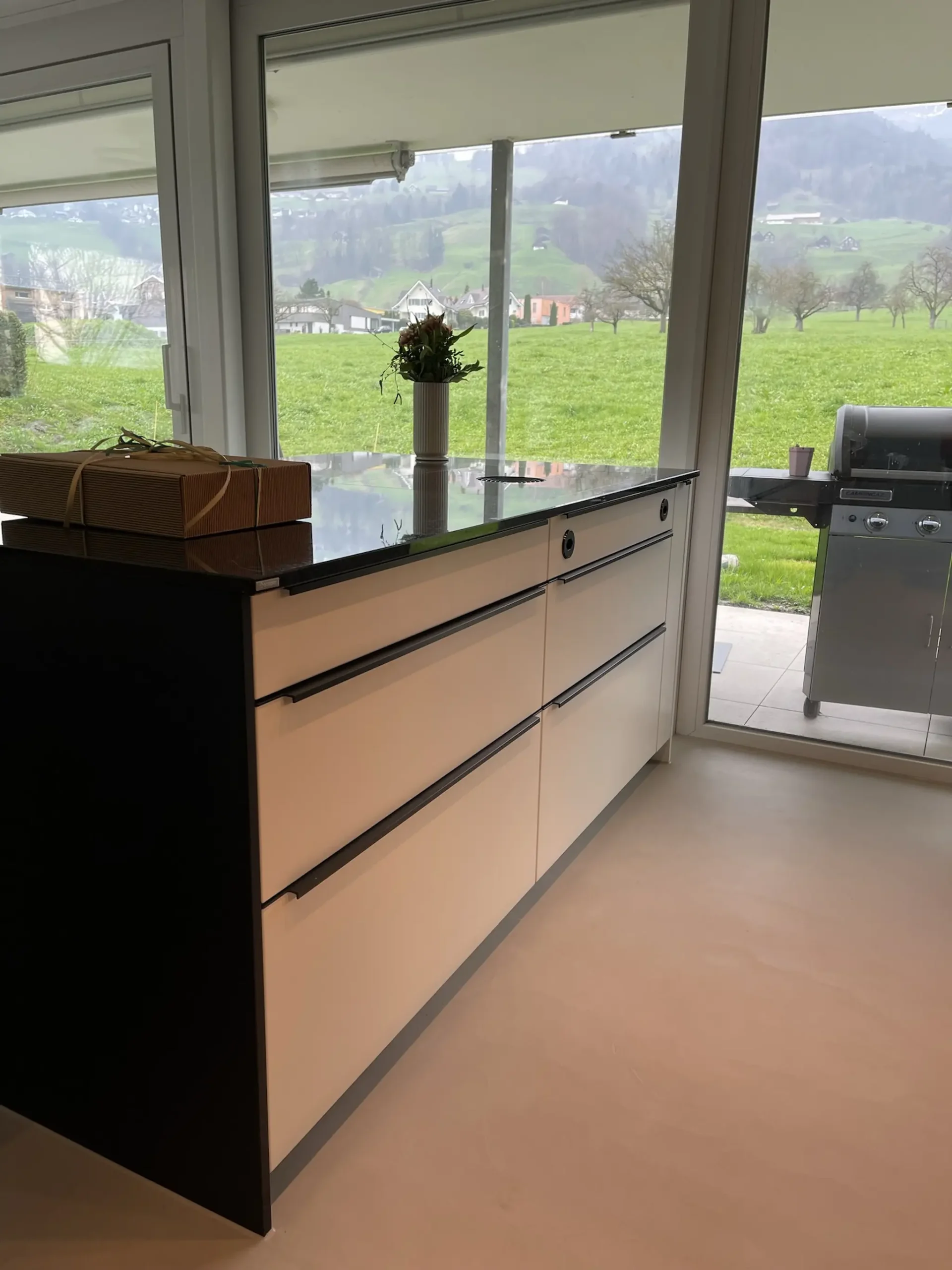 Für diese Wohnung im Rheintal wurde eine moderne offene Wohnküche mit Kochinsel geplant, die klare Linien mit warmen Materialien verbindet. Ziel war es, eine Küche zu schaffen, die sich harmonisch in den offenen Wohnraum integriert und gleichzeitig als zentraler Treffpunkt im Alltag dient.